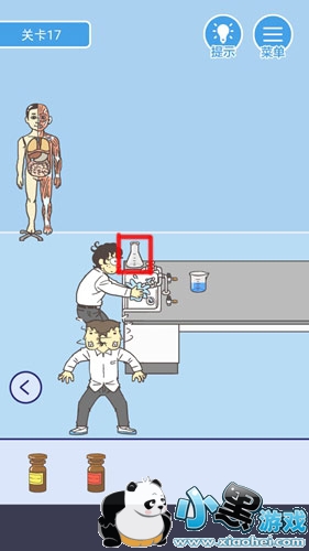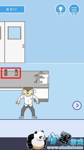 第17关:点击桌子上两瓶药水,获得它们,然后前往右侧区域。