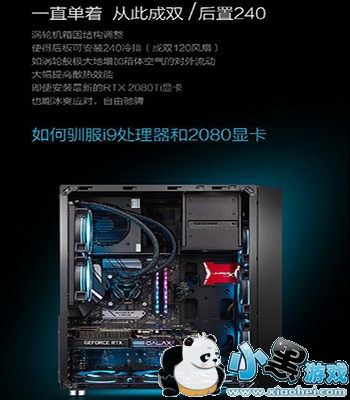 颠覆的最核心表现,是机箱带来了革命性的水平风道理念,相对于传统的垂直风道,水平直通的方式,效率更高,冷热交换更加彻底,而更加给力的是,机箱背部甚至可装载双风扇或是240mm的水冷排,让水平横风有了更加强劲的原动力,哪怕是i9处理器和2080显卡,都能零负担驯服,这样的改良着实让DIY发烧友十足地叹服。