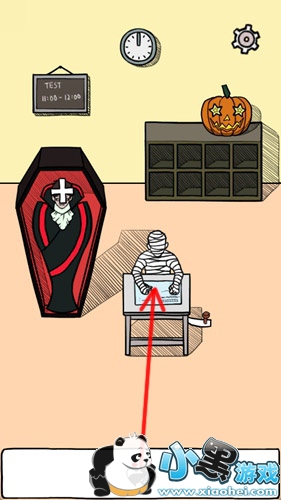 点击道具栏中的十字架,再点击吸血鬼的头,将十字架放在他头上。