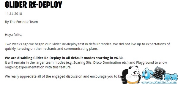 但是滑翔伞重新部署将保留在团队模式(例如,壮志凌云50v50,舞力占点等)和游乐场,以允许持续进行此功能的实验。