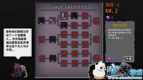 这里雨落要说明一下,每一局的灵魂点数只能在本局结束后进行加点,如果剩余灵魂点数无法再继续升级任何技能,那么我们只能点击“献祭”按钮,将剩余的灵魂点数给“清空”才行,否则无法继续进行下一局的挑战。