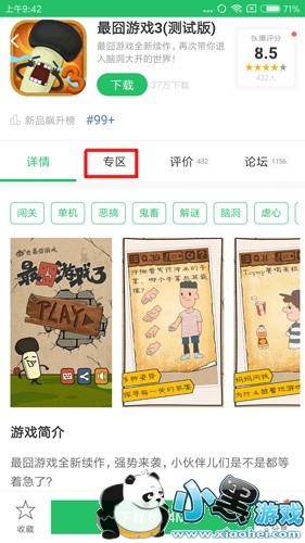 4、在详情页我们可以看到游戏介绍和版本更新动态,点击“专区”按钮,即可跳转到攻略专区。