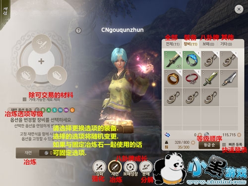 1.强化:对应武器,饰品的强化升级(5级以上有几率失败)。
