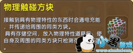 更加方便计分,放入指定的物理特性道具后,如果触碰到该道具,就会通电,是触碰方块的进化版。