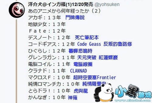 近日,一位推特网友就整理了自己喜爱的动画的播出年份,看过这个年份表之后,可能你也只能感慨自己真的老了。