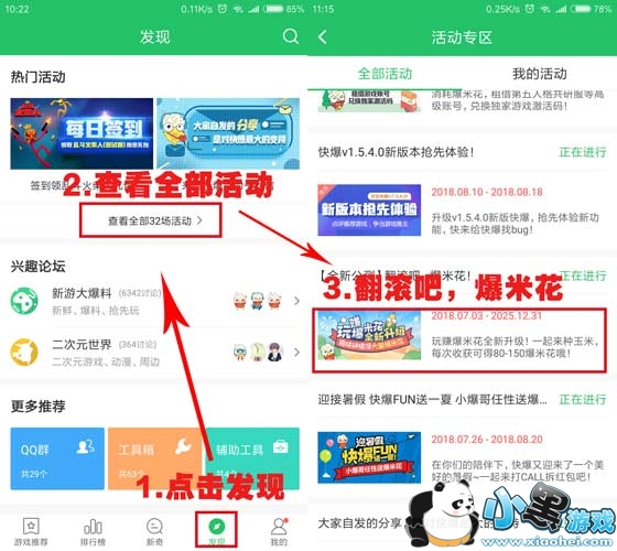 在发现——活动——【翻滚吧,爆米花!】活动中,通过每日必答题、邀请、体验等方式,可以轻松获得爆米花哦!另外,在其他快爆活动中,也有不少能够赚取爆米花方法,例如【预约游戏分享赢奖励】,还在等什么赶紧参加活动赚取爆米花吧!
