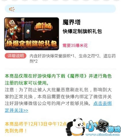 魔界塔快爆定制旗帜礼包闪亮登场,现在只要到好游快爆爆米花商店进行兑换,就能获得快爆定制旗帜,快爆定制旗帜将于12月13日中午12点开启兑换,数量有限,先到先得哦~