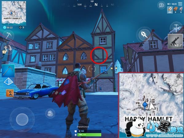 我们可以为这个钟楼为参考物,那么战旗就在钟楼边上的位置,最终确认在下图红圈位置。