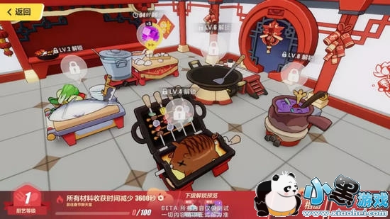 一开始,我们的厨艺等级是1,制作的美餐数量越多,厨艺等级就越高,就能解锁更多的道具获取方式。