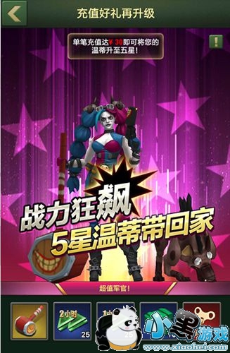 新服首充好礼再升级,单笔充值6元可激活首充奖励,单笔充值30元可激活次充奖励,单笔充值68元可激活三充奖励,超壕气奖励:满星温蒂、周卡体验卡、拳击鸦-零件、10级机器人突袭者等统统收入囊中!