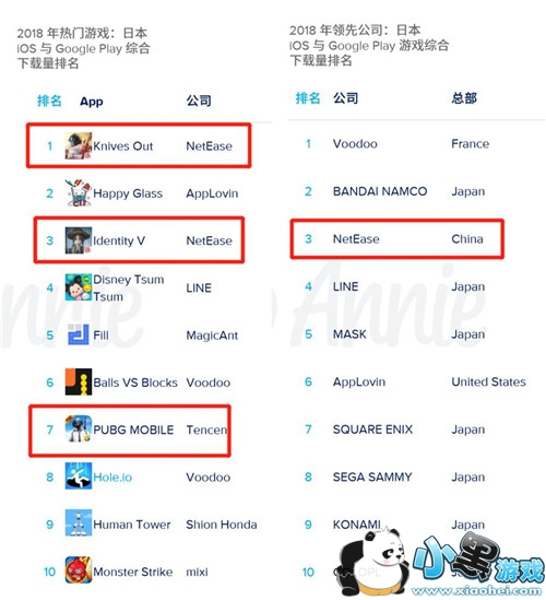全球其他三大市场榜单:网易攻陷日本市场