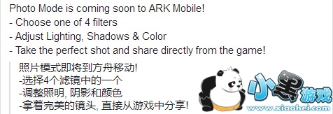 照片模式即将添加到方舟生存进化手机版!选择4个滤镜中的一个!