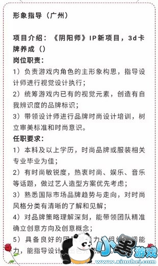 有趣的是,这款3D卡牌养成新项目还在招聘形象指导,并希望候选人是时尚品牌或服装相关专业毕业,有时尚敏锐度,熟悉国际市场品牌趋势与走向,甚至做过艺人造型方案。