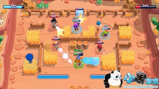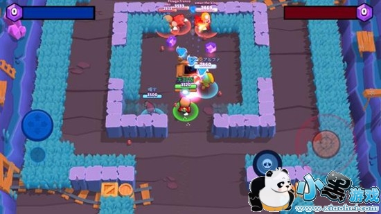 画面上,游戏走的卡通画风,Supercell一贯的精致美术风格,略带美式的人物建模风格,比较讨喜。地图的配色十分舒服,比如在偏西部风格的地图中,整体偏向“沙漠黄”,地图中除了有仙人掌,木桶这些元素之外,草丛看上去像一片金黄的麦穗。而在“宝石争霸”的地图中,整体偏向紫色的矿洞,让人对玩法一目了然。