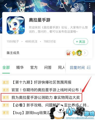 4、论坛首页置顶帖点击“我为奥拉星手游公测助力 拿实物周边大奖”活动帖,在该活动帖按照格式回帖即可参与评奖。