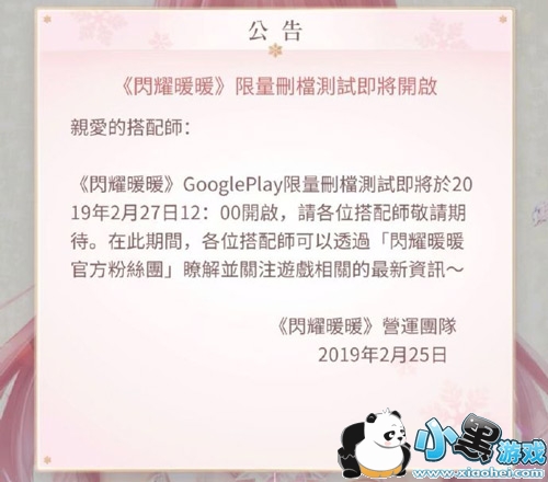 《闪耀暖暖》GooglePlay限量删档测试将于2019年2月27日12:00开启,为期8天!目前游戏已开放下载,但资格尚未公布,小编会保持关注,为大家带来第一手测试消息: