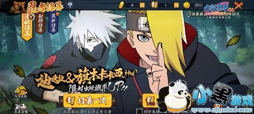 卡卡西【神威】以及迪达拉这两位忍者再度限时出现,在3月8日-3月14日期间,卡卡西【神威】、迪达拉的招募获取概率大幅提升,想要这两位强力S级忍者的学员千万不要错过啦!