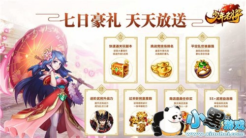 热血激情的三国之旅今日正式开启,为助力各位少年豪杰一统三国,《少年名将》开启七重豪礼送到手软活动。每天登录游戏,完成当天相应的活动内容,即可领取丰厚奖品。元宝、宝箱、橙将碎片、精品道具,甚至更有SS+级前排武将任你挑选,携军为你而战。