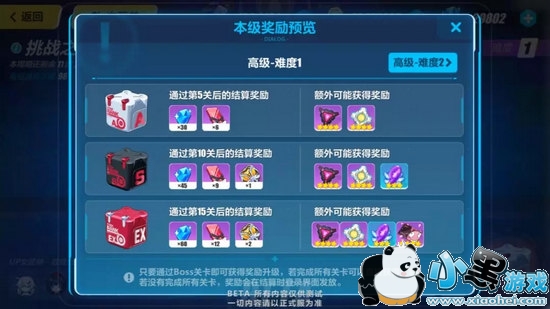 终极区与高级区相比,能够得到的关卡特殊加成较少,难度较大。