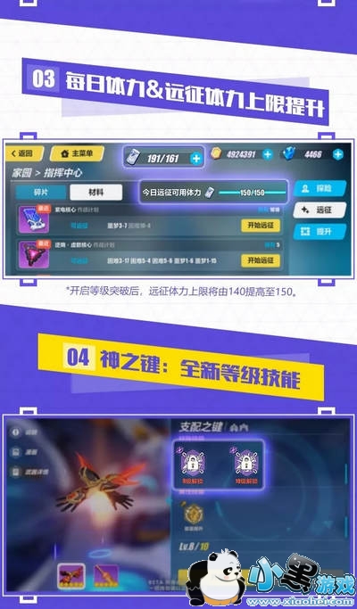 1)远征体力上限增加:由140提高至150