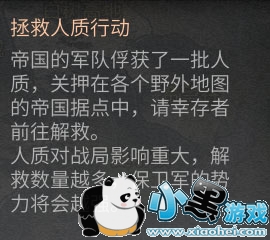 当世界进入轻度沦陷,各地图帝国军营驻扎士兵变多,军营或驻扎点会出现被挟持的人质需要幸存者们去解救,同时玩家需要在各地图拦截帝国资源补给车,阻止帝国士兵属性增强。有联盟保卫军驻扎势力的地图,幸存者可以给雇佣军送礼,每日送礼人数达到一定值后雇佣军小弟将入驻保卫军驻扎点,增加保卫军势力。
