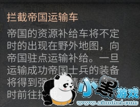 当世界进入重度沦陷,除了轻度与中度出现的情况外,每天中午12点30分,帝国将随机选取5个活跃营地进行攻击,其他玩家可以前往任意营地进行援助,全服击杀帝国士兵数量超过一定数值后,帝国士兵将撤退,根据每个人造成的伤害量和伤害排名发放奖励。