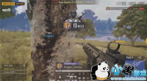 第三局:Rangers最猛战队名副其实,决赛圈2V1被AGON的独狼率先偷掉一人。此时仅存的Rangers_Temeria毫不犹豫地冲出掩体,在没有完全锁定对方具体位置的情况下打了对手一个出其不意,11杀弥补上一局鸡屁股遗憾!