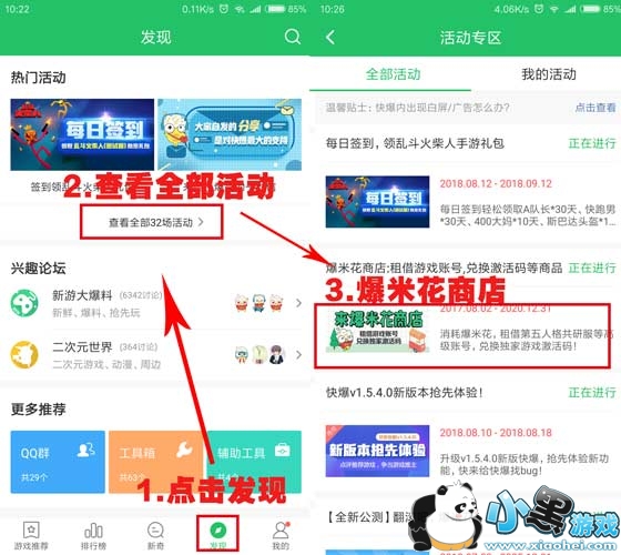 步骤一:进入好游快爆首页→发现→活动→爆米花商店。