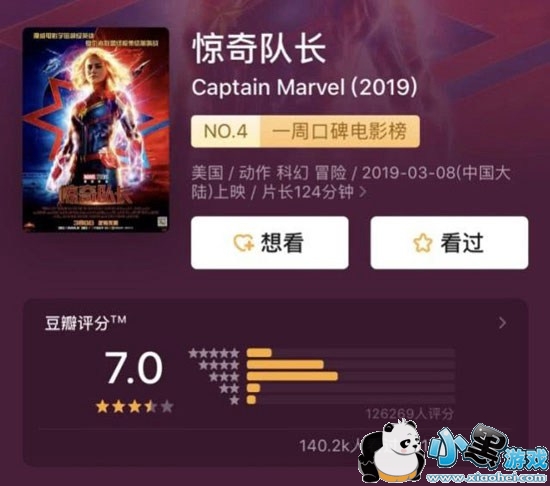 但是和漫威的《惊奇队长》 7.0 的评分相比,还是略高一点。