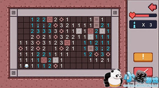 然而,《布丁战士》最大的特色在于游戏加入了扫雷玩法,玩家进入迷宫中将以“扫雷”的方式进行探索,玩过扫雷的人应该都知道,我们需要通过游戏中的数字提示来推算出哪一个位置是雷,而一旦点到雷那么游戏就会结束。