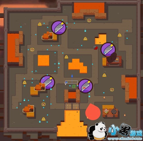 顾名思义,熔岩洞窟内充满了岩浆!当玩家触碰到岩浆时,每0.8秒都将受到最大生命值8%的伤害!与此同时,岩浆还会使角色无法通过移动回血,并被减速30%。场景内各处存在有沸腾的熔岩池,破坏熔岩墙后,熔岩将倾泻在附近地面,形成全新的熔岩地带!同时每一面熔岩墙都有40%的几率掉落熔岩靴哦!熔岩靴的具体效果还请参照上一篇道具攻略!巧妙避开危险的熔岩,并将你的敌人逼入绝境吧!