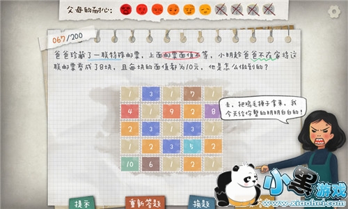 根据开发者称:这游戏真的有点“难”,在游戏中你可能会因为无法顺利解题而怀疑人生。但我们希望能通过这种游戏的方式,让广大玩家能体会中国家长在辅导孩子作业时产生的崩溃感觉,同时更能理解作为孩子做不出题时的无助心情。
