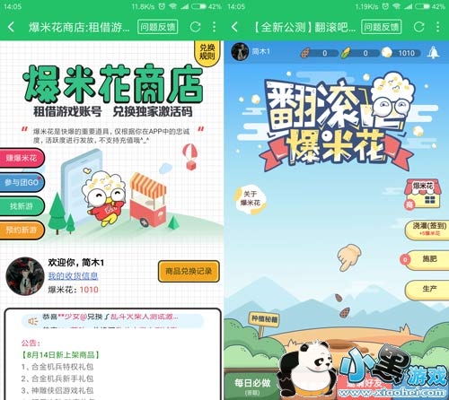 2、还可以用爆米花兑换各种游戏礼包,体验服租赁账号,好礼多多,兑换无极限。
