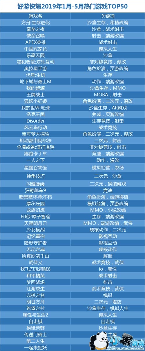 虽然这些游戏中难免出现遗漏,比如游戏由于近期热度下降,或者曝光时间不久的游戏。但这份表格基本上涵盖了大部分玩家评价不错以及期待值很高的游戏。