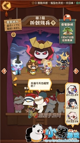 二、百鬼剧场演出:百鬼剧场,百鬼剧场结束时会产出大量的经验,玩家们凭借这些经验可以快速地进行升级。