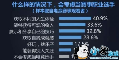 对于赛事受众而言,“是否考虑成为职业选手”这一选项也呈现出类似的倾向。表示会出于兴趣爱好和收入因素做出选择的受访者都占到了较高的比重,人们对于电竞职业的看法,也反映出了这一产业的快速上升。