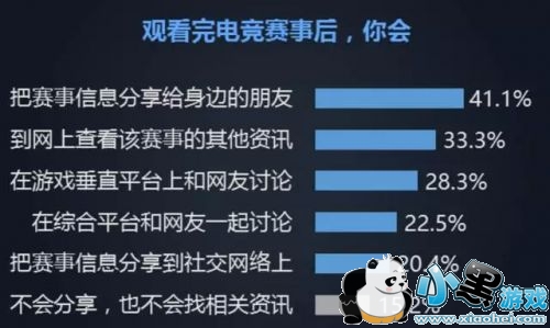 在电竞概念深入同时他们也乐于分享电竞赛事的各类信息,调查显示:愿意通过社交网络、垂直平台或线下来分享的人占到用户群的60.5%,赛后会查找其他信息、讨论的共占到84.1%。