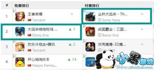 最近“吃鸡”游戏在App Store很威风,付费榜TOP50有3款吃鸡游戏,一款名为《丛林大逃杀》的产品更是登顶了榜首。在免费榜上也有一款《大逃杀绝地吃鸡》排到了第2名,要不是有《王者荣耀》挡在前面,这次App Store免费榜和付费榜的冠军都要落到“吃鸡”手游手里了。