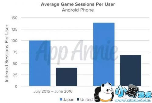 和美国地区相比,日本玩家获得游戏应用的频率是其两倍,实际上,在平均每用户游戏次数方面,日本在全球排名第一。