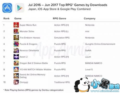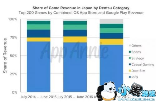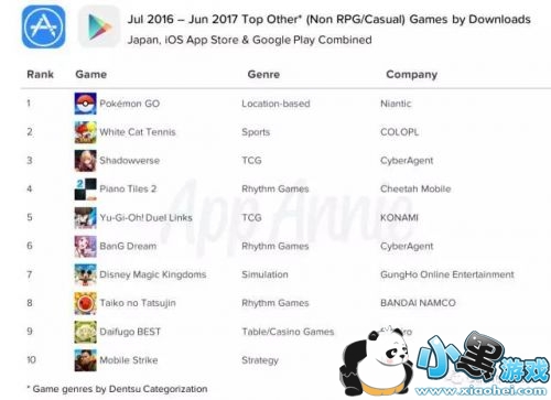 种子2016年7月至2017年6月期间,RPG游戏占据日本市场下载量的55%和收入的65%。尽管如此,仍有外来者抢占了RPG游戏的下载份额,比如LBS玩法的《Pokemon Go》以及体育游戏《White Cat Tennis》,都意外成功。