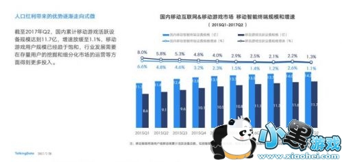 根据talking data的数据显示,自2015年以来,国内移动智能终端设备规模和移动游戏活跃设备规模增速都在不断放缓,前者从2015年Q1的6.6%降至1.1%,后者则从2015年Q1的8%降至1.3%,两项数据的增长趋势已处于非常平稳的阶段,未来游戏人口大幅增长的可能性已微乎其微。