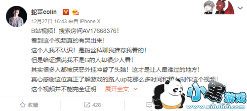 昨天下午蛇哥Colin发表微博再次说到了最近的开挂事件,蛇哥称自己将可能停播2-3天,并用这段时间确认好线下表演15倍压枪的地点,更是顺手贴出了一个B站视频号,视频内容为“实锤昨天锤蛇哥的视频作者造谣,不然他愿意入狱”。
