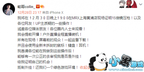 昨晚,蛇哥更新微博,表示自己将会现场演示15倍压枪,希望大家还他清白。