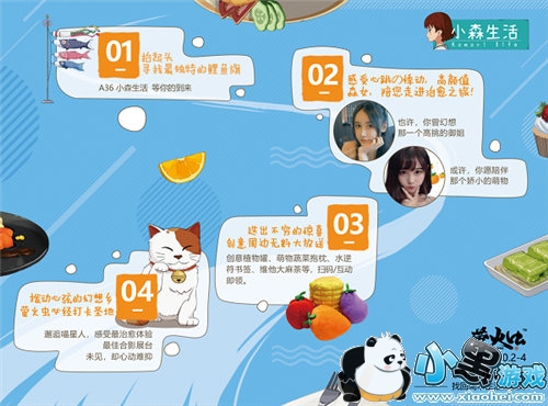 此外,制作组还准备了多个展台活动与玩家互动。多种蔬菜抱枕,萌萌哒茄子、胡萝卜、辣椒、玉米只等你来领取。创意植物罐,一颗种子就能将田园带回家。还有水逆符书签、维他柠檬茶等多种礼物,只要扫码或互动就能带走。最最重要的是,《小森生活》展台还会打造首个聚众撸猫圣地,治愈系猫咪等你来撸!