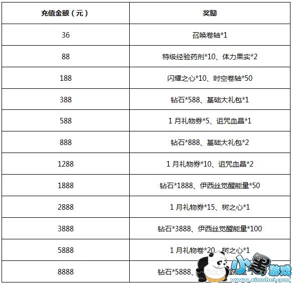 5、充值30元(包含所有人民币消费),即可获得普蕾西亚灵魂石*30、体力果实*1;