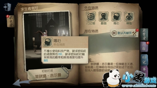 唯心:不擅长使用科技产物,破译密码机的速度降低15%,破译密码机时触发校准的概率和校准难度提升50%。