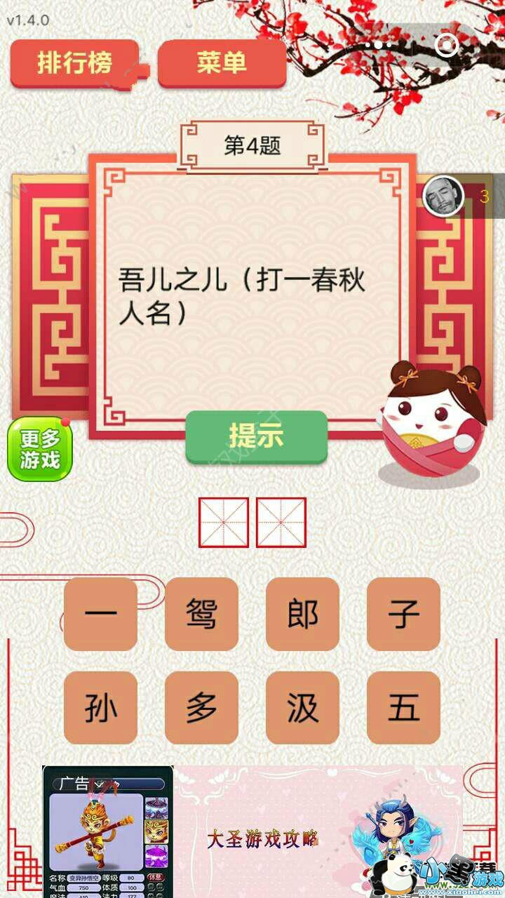 《王者猜谜》第4题:吾儿之儿(打一春秋人名)