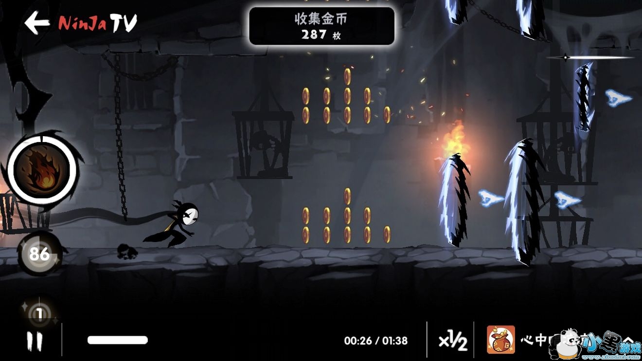 之后随意跑跑 看见上下都有金币的板子了开第二次技能