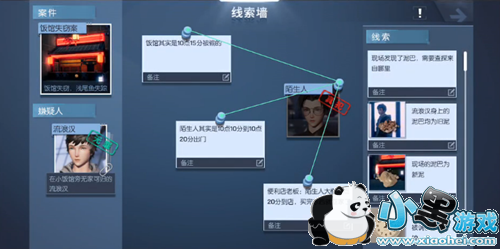 6、打开线索墙把所有线索和流浪汉连线可以确证不是流浪汉,并产生新的嫌疑人。