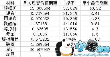 3-2,15理智,37%掉率,单个掉落期望理智40.5